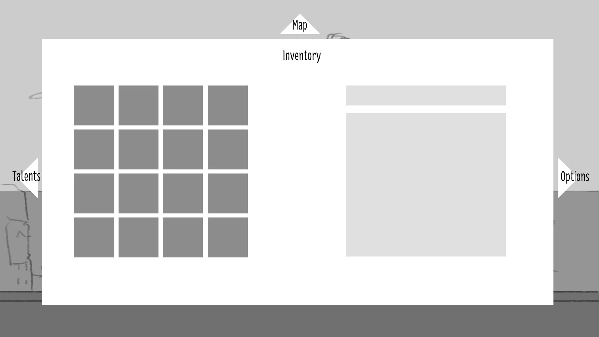 The primary goal for this project was to design UI for a Metroidvania style game. I’m a big fan of the genre, with Super Metroid and Symphony of the Night being two of my favorite games of all time. The scope of the project was to create an environment concept for the HUD, design characters, develop all system menus, and create a gallery of icons including: weapons, skill badges, mapping, equipment, and collectible artifacts.